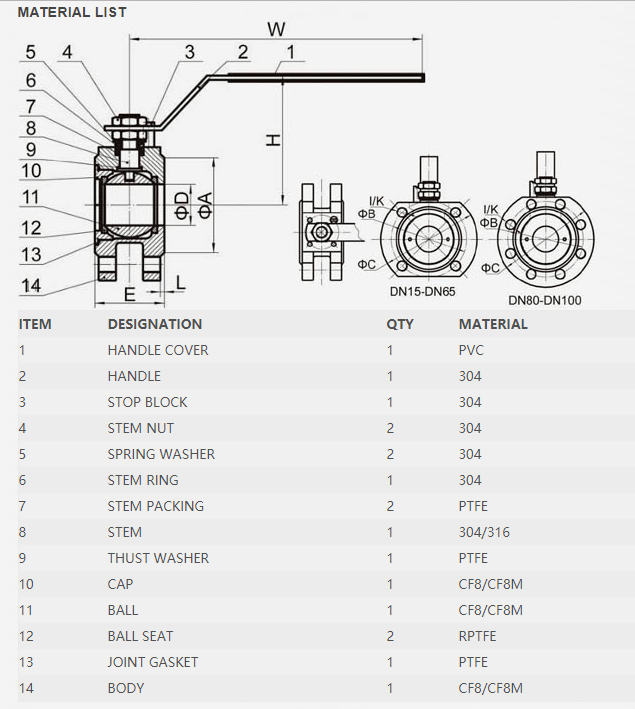 new type 1pc Wafer Flanged stainless steel ball valve With ISO5211 FEATURES