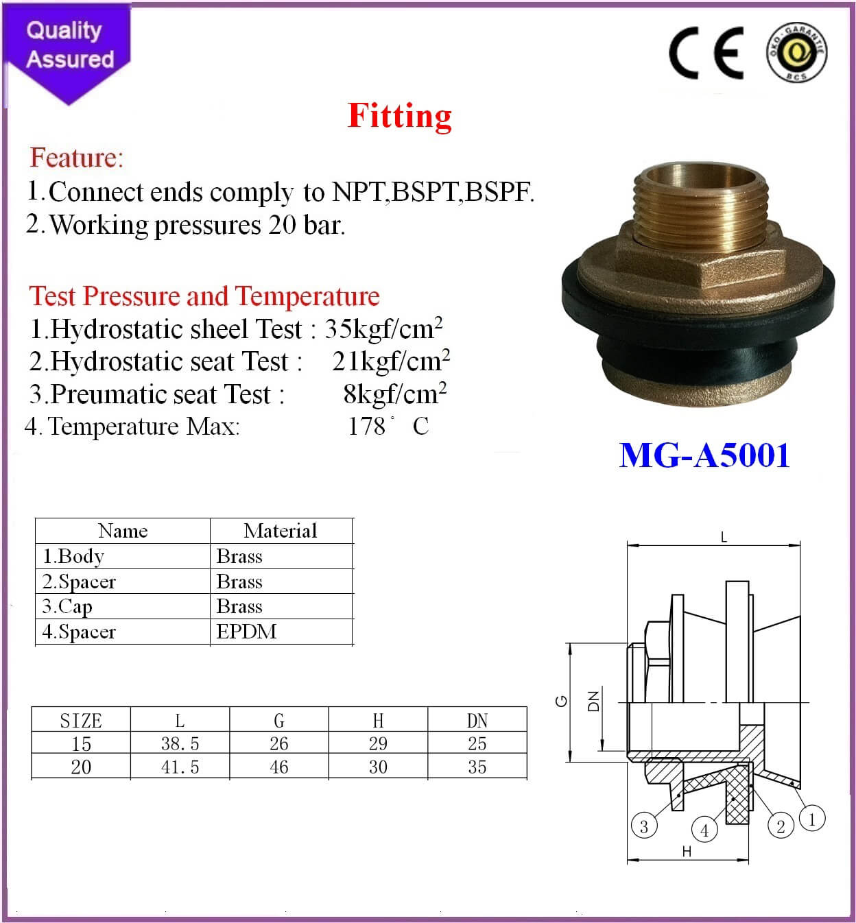 3.Preumatic seat Test : 8kgf/cm2